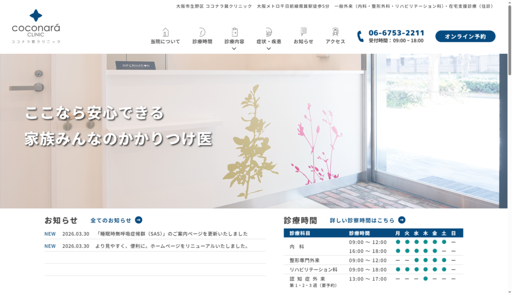ココナラ巽クリニックのWEBサイトをリニューアルさせていただきました!