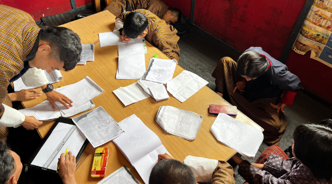 ここでは、ブータン各地から集まった知的障がいのある生徒さんを中心に、自立支援を目的として伝統絵画、彫刻、縫製などを学んでいます。